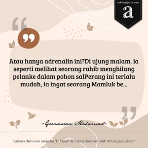 Puisi “Dewa Ruci” menyuguhkan sebuah perjalanan batin yang dalam dan penuh dengan simbolisme. Dalam penggambaran Bima yang mencoba memahami Dewa Ruci, terungkap tema pencarian jati diri yang universal. Pilihan kata yang digunakan menciptakan visual yang kuat, terutama ketika menggambarkan suasana palung hitam dan ikan-ikan yang menyelami lautan. Namun, meskipun keindahan bahasa terasa, ada kalanya penggunaan frasa yang kompleks bisa membingungkan pembaca. Keaslian ide terasa menonjol, mengingat puisi ini berani mengangkat mitologi dengan sentuhan personal. Kedalaman makna yang dihadirkan memberikan ruang bagi pembaca untuk merenungkan makna kehidupan dan pencarian makna itu sendiri. Elemen kejutan, walaupun ada, bisa lebih diperkuat untuk memberikan dampak yang lebih mendalam. Secara keseluruhan, puisi ini adalah karya yang menggugah, meski masih ada ruang untuk eksplorasi lebih lanjut dalam penyampaian pesannya.